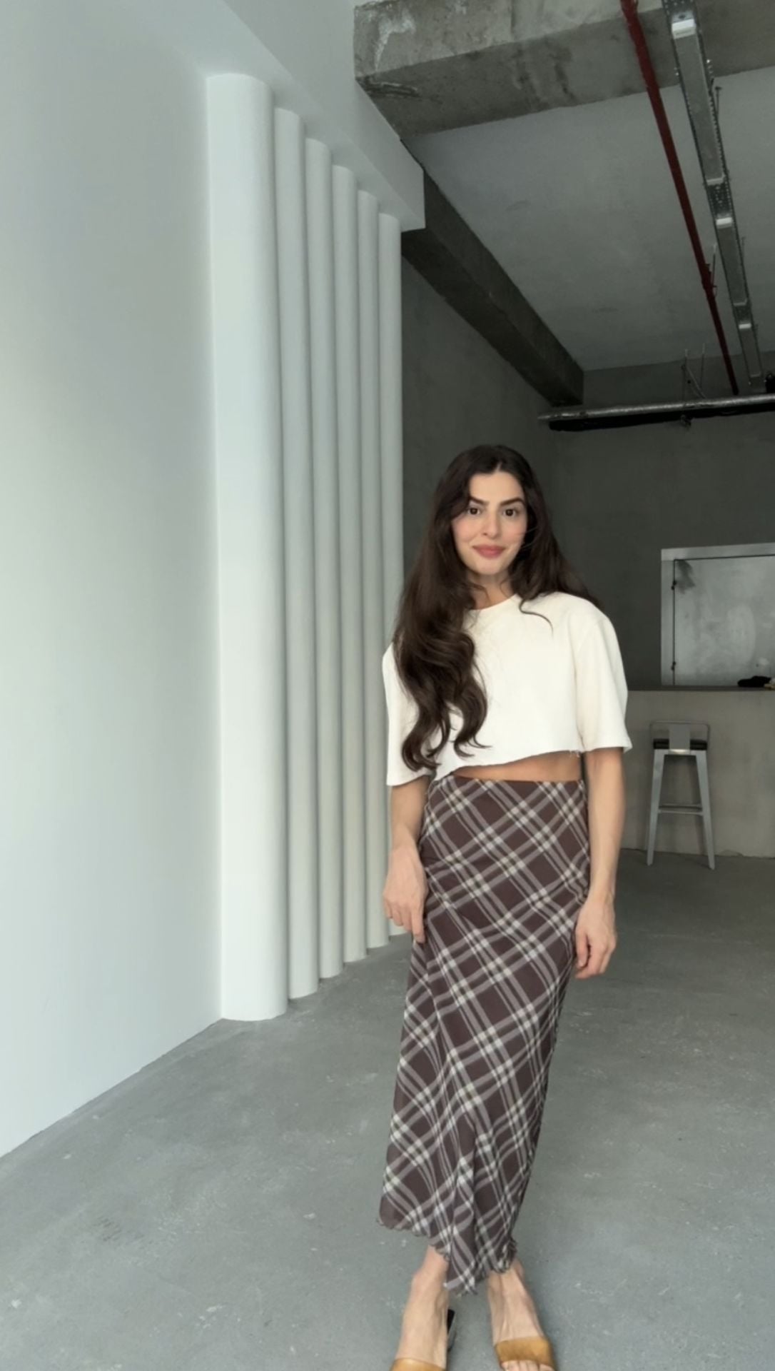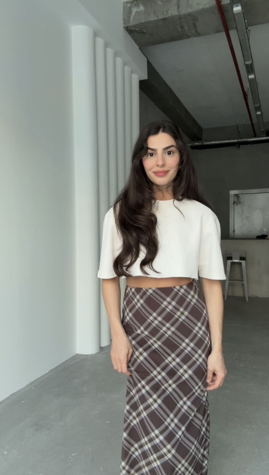 Astarlı desenli maxi etek