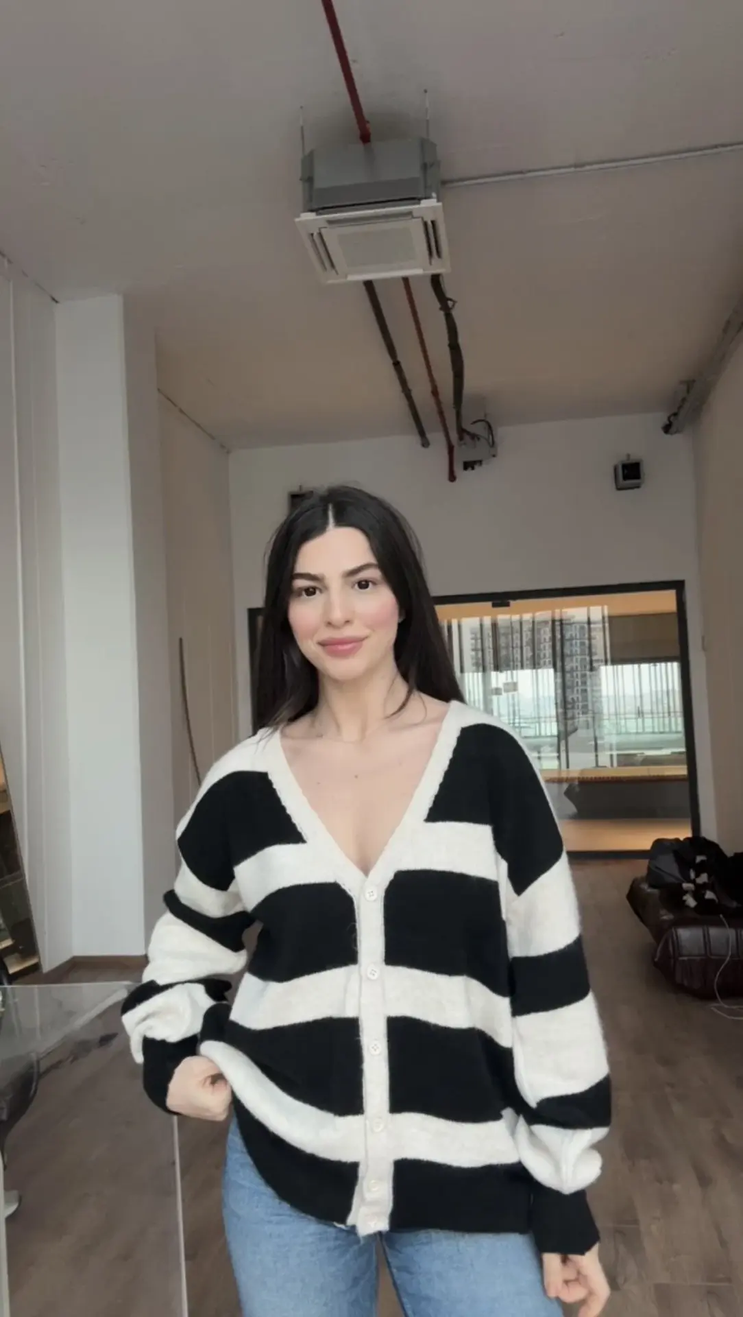 Atki detaylı çizgili hırka