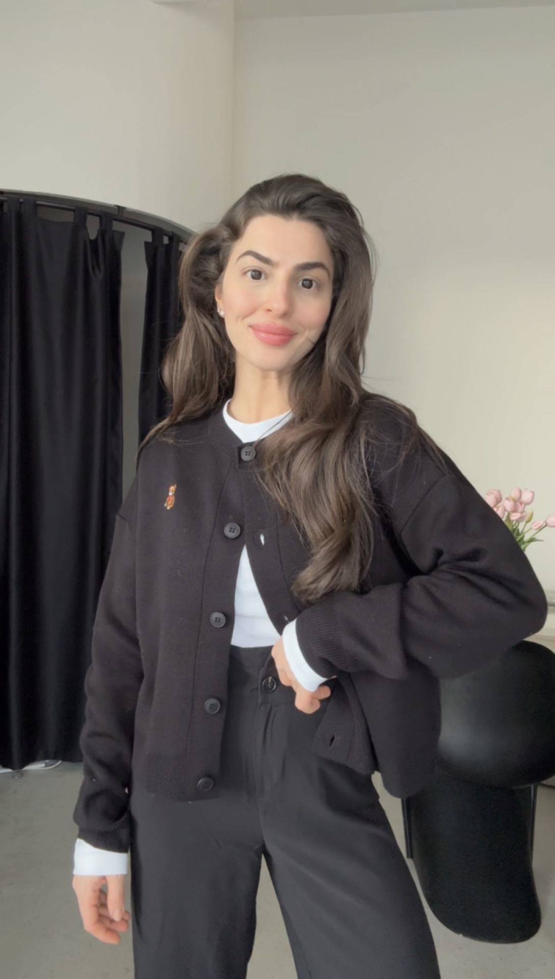 Ayıcık detaylı siyah hırka kazak