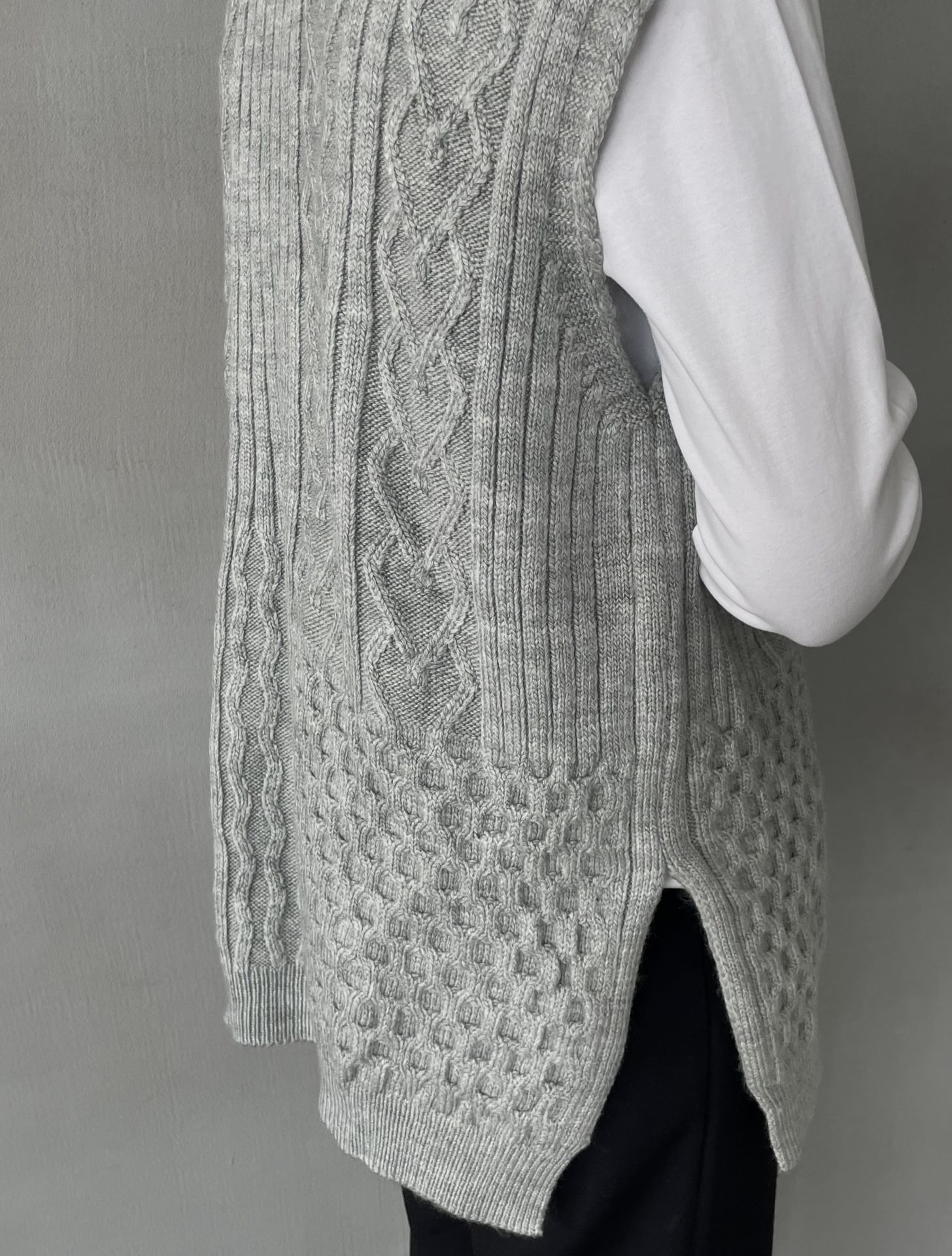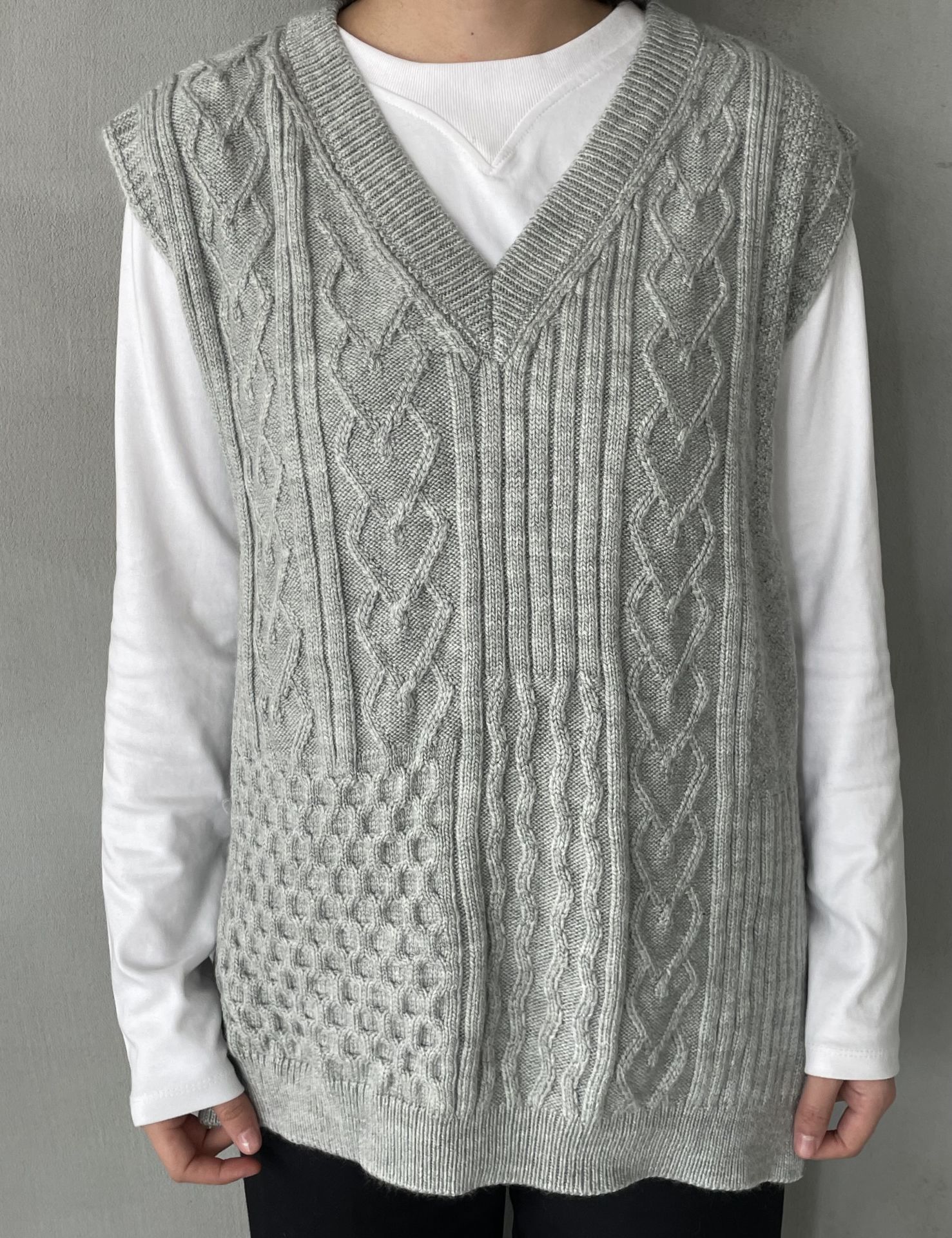 Gri örgü tasarımlı triko süveter