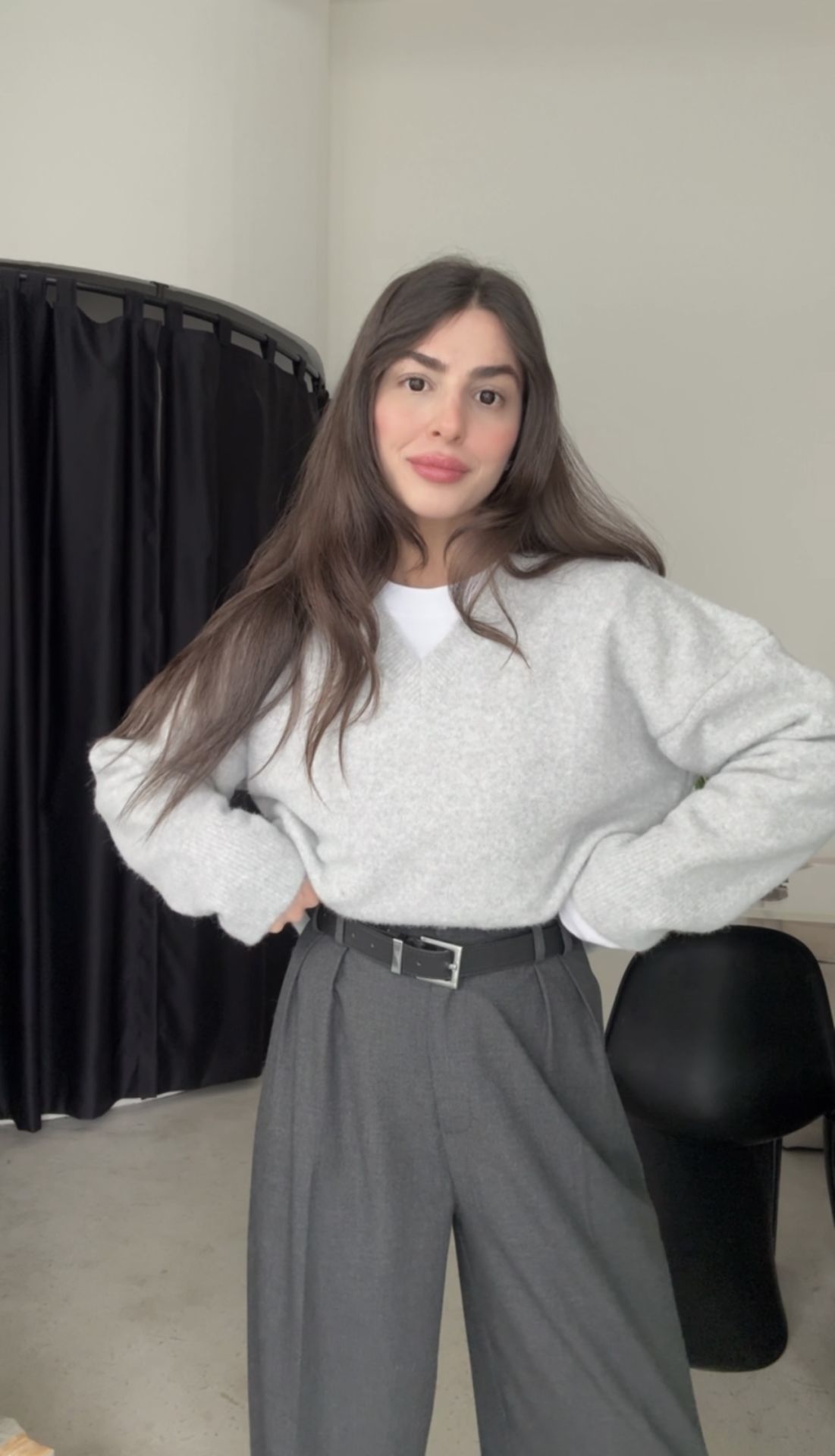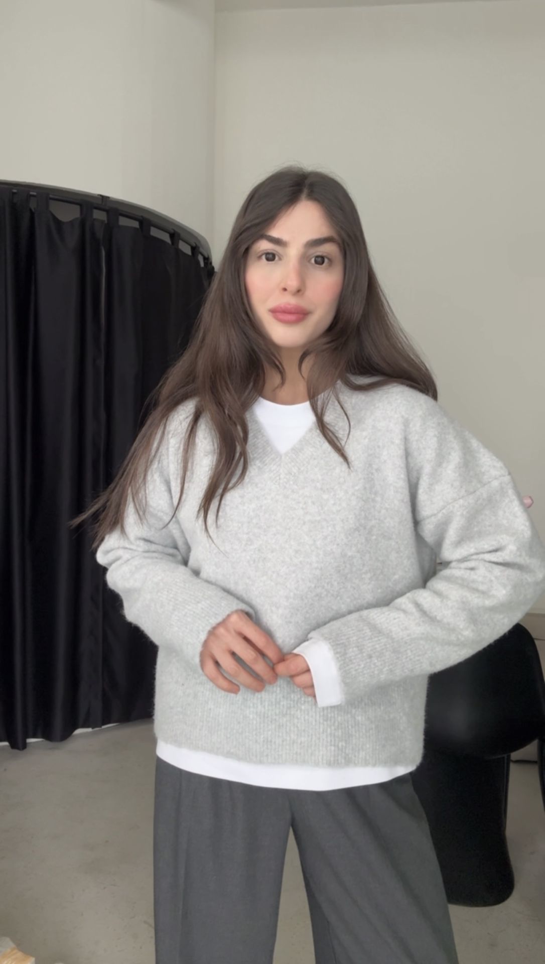 Dilvin açık gri v yaka kazak
