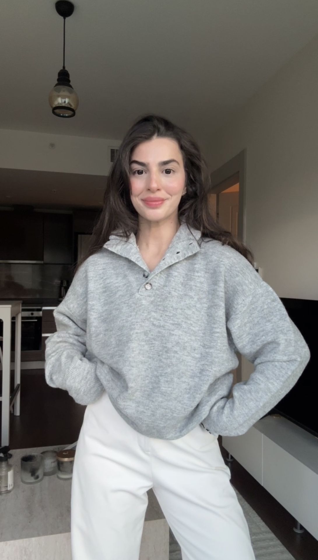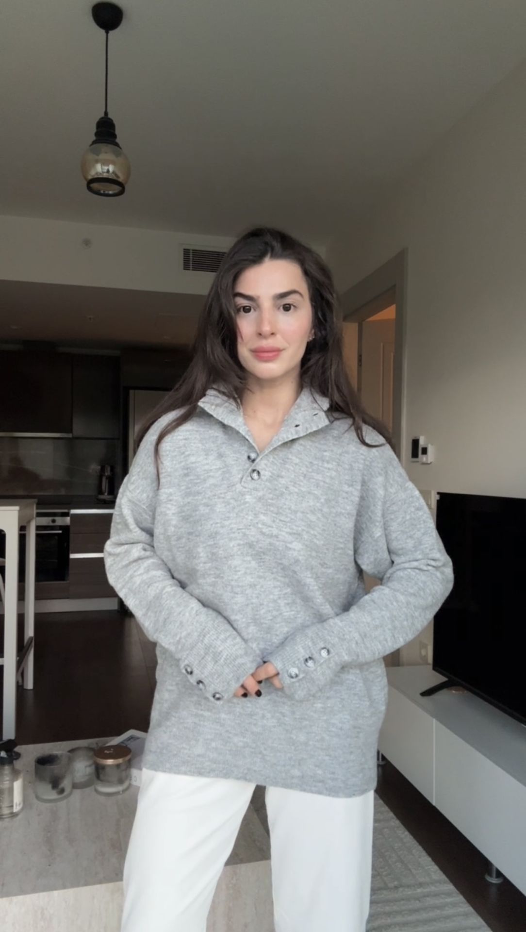 Dilvin düğme detaylı gri marka muadil kazak
