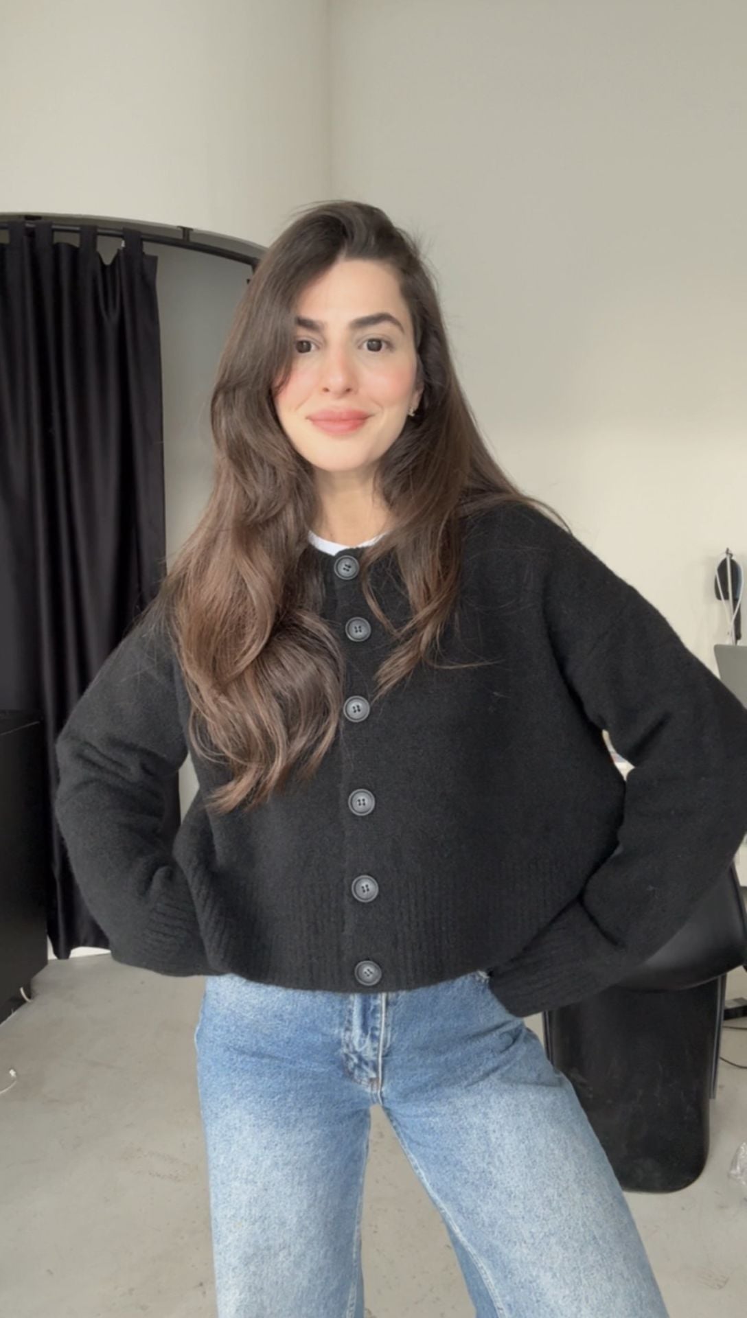 Dilvin marka yırtmaçlı siyah triko kazak hırka