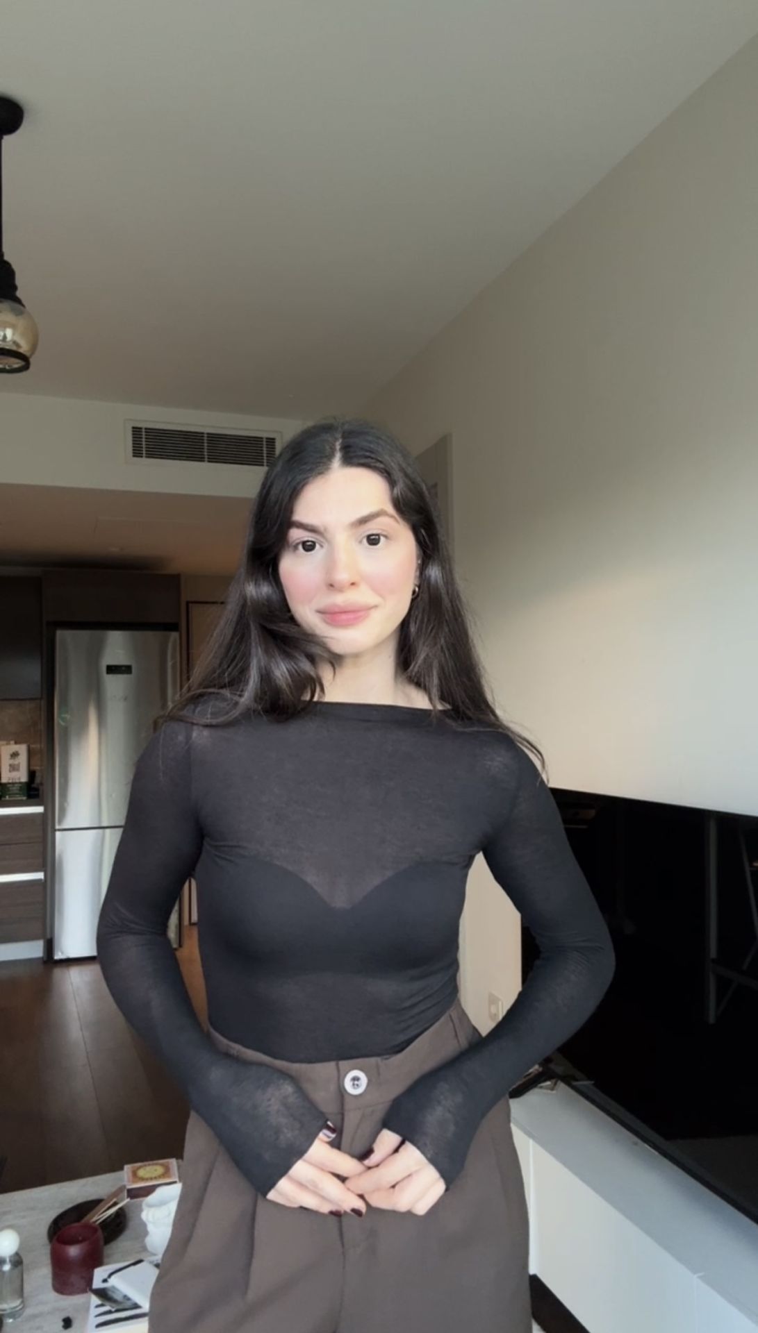 Dilvin siyah kaşmir karışımlı transparan bluz