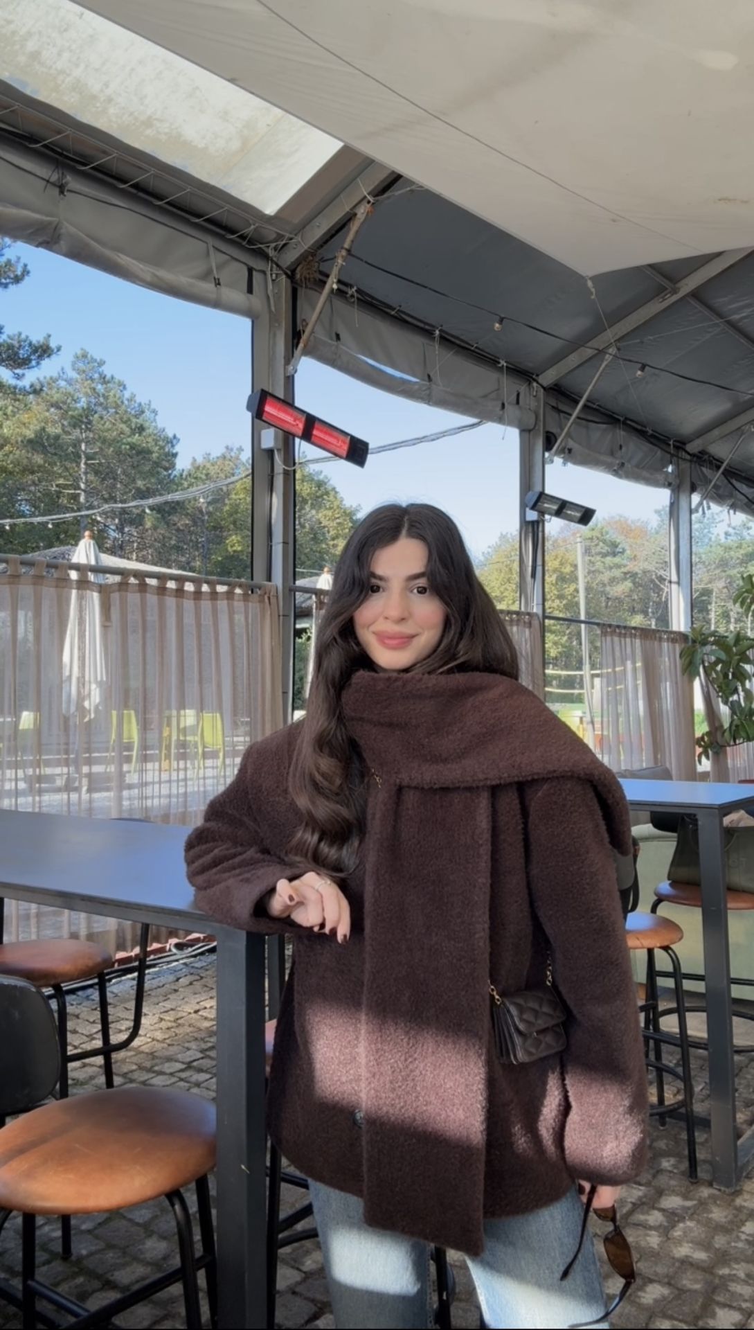 Ürün ön sipariştir.şalı bağımsızdır astarlı ve premıum bir kumaştır.tam rengi acı kahve