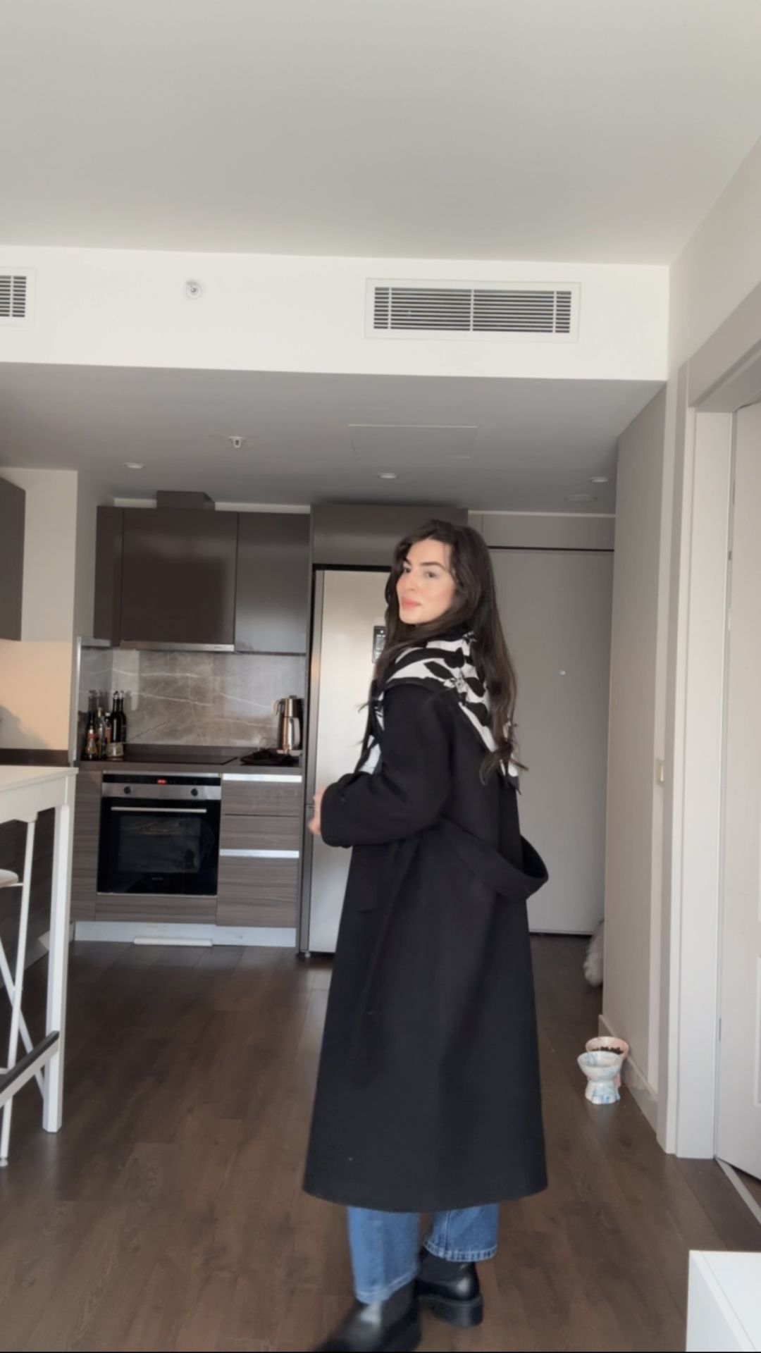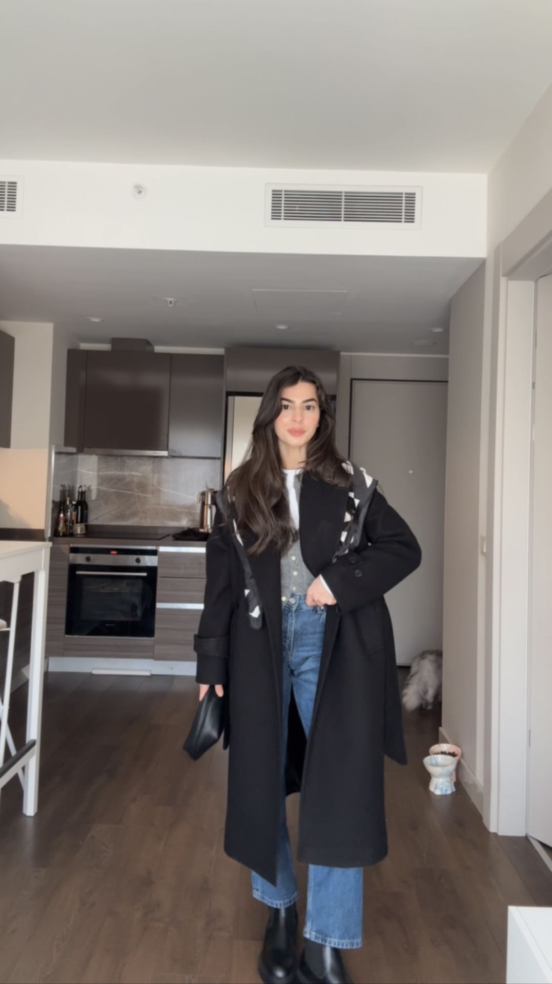 İçi astarlı kuşaklı premıum kaban