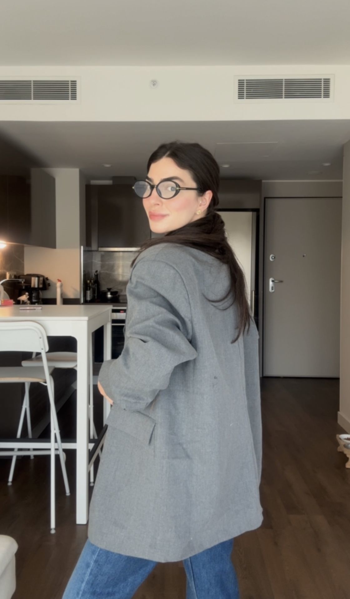 İçi astarlı vatkalı antrasit blazer