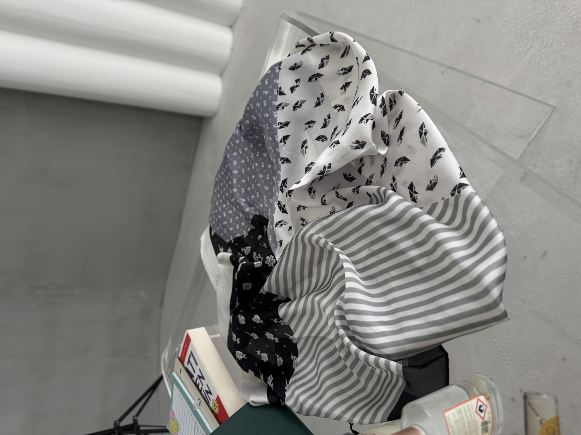 İpek mavi gri desenli fular