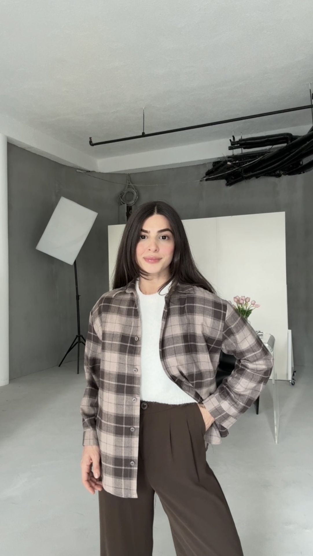 Kahve vizon büyük kareli gömlek