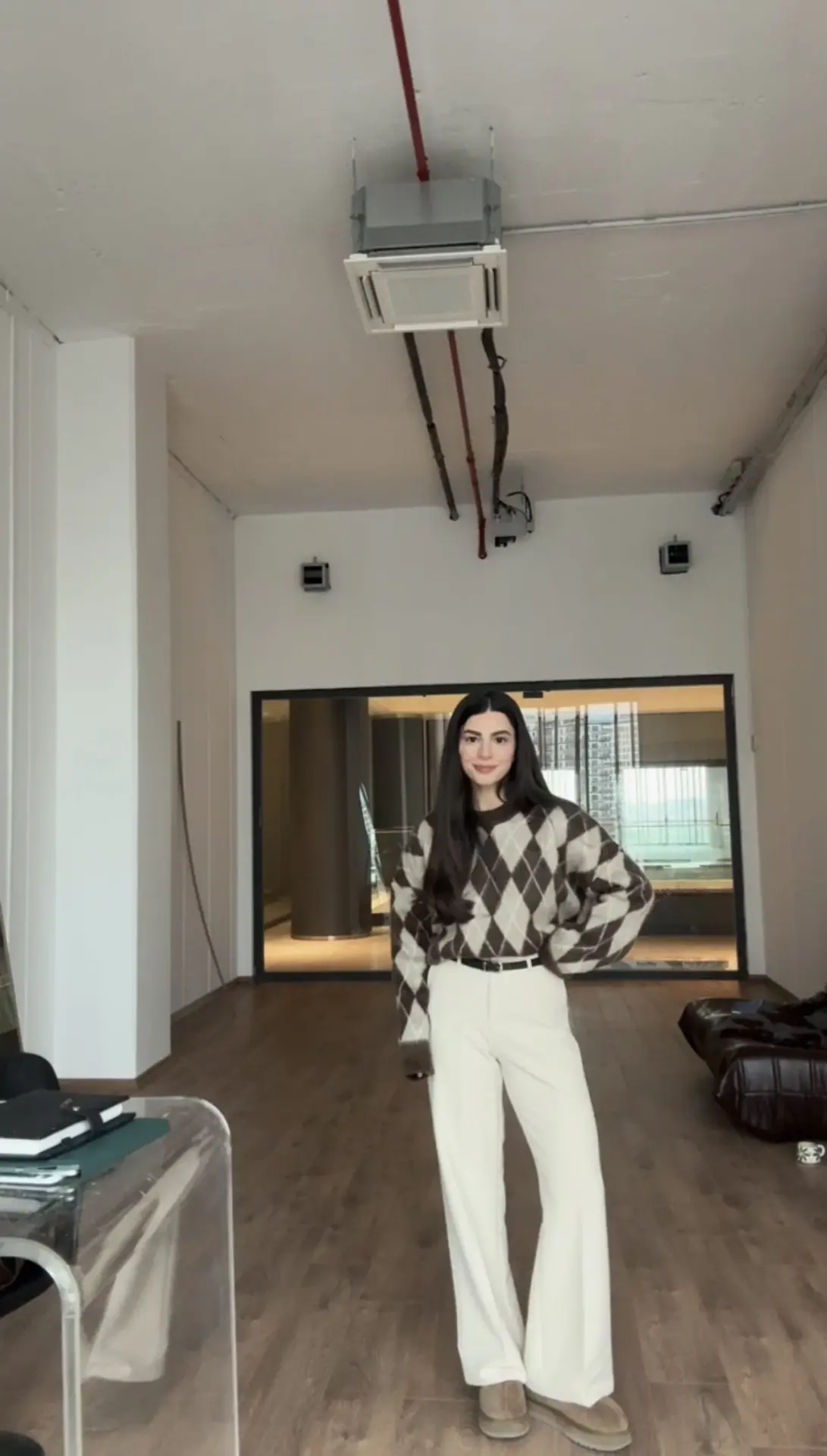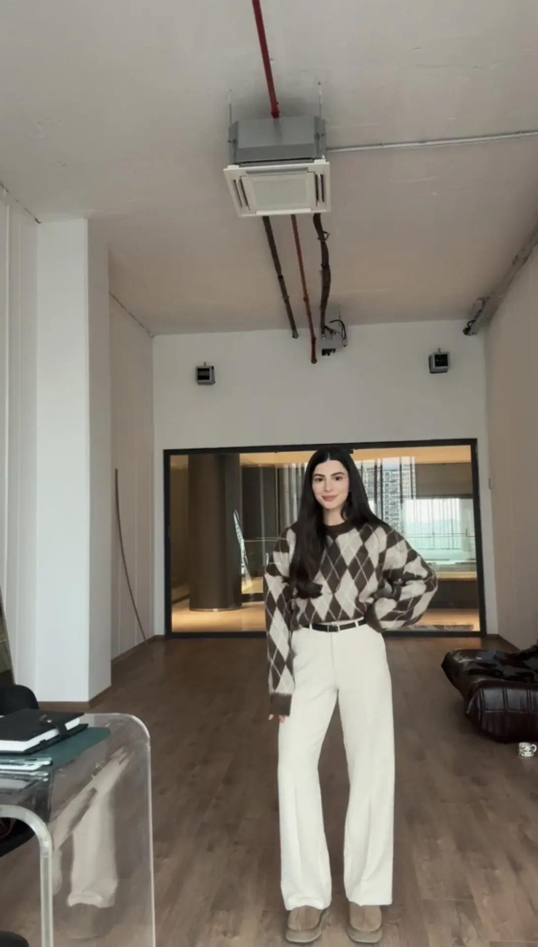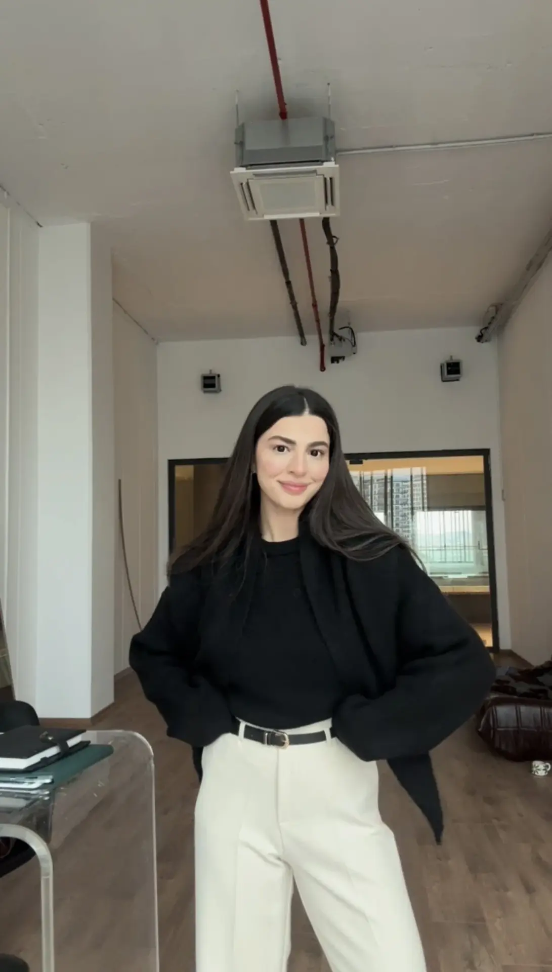 Karol kemerli ekru pantolon