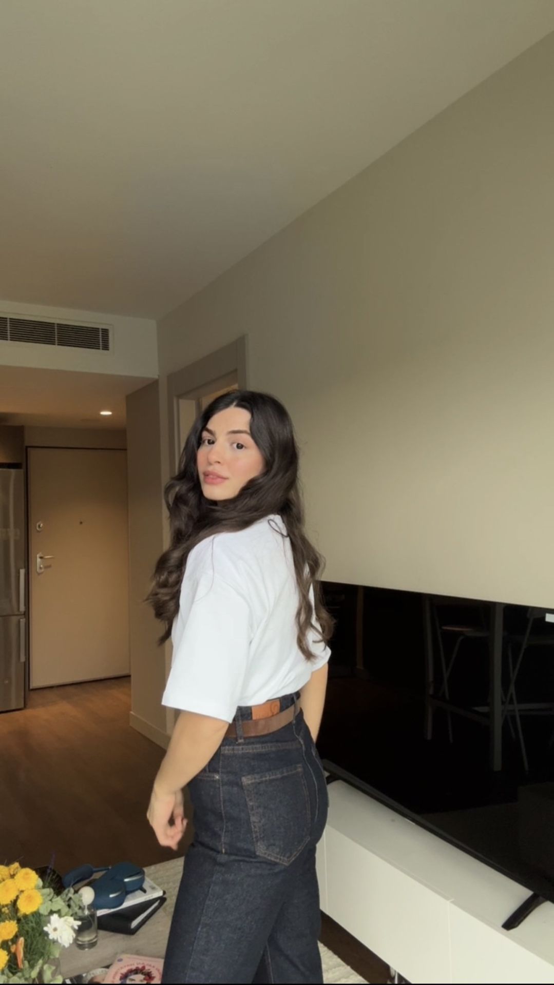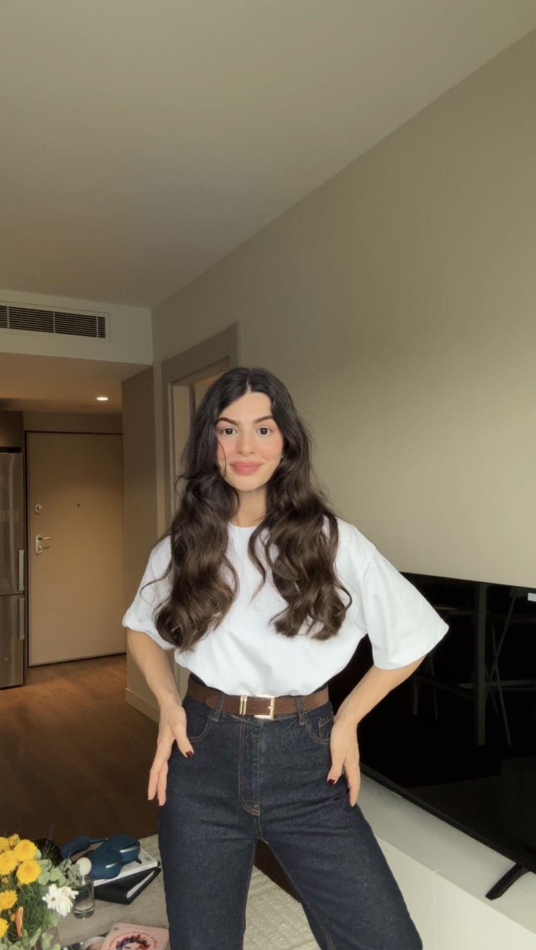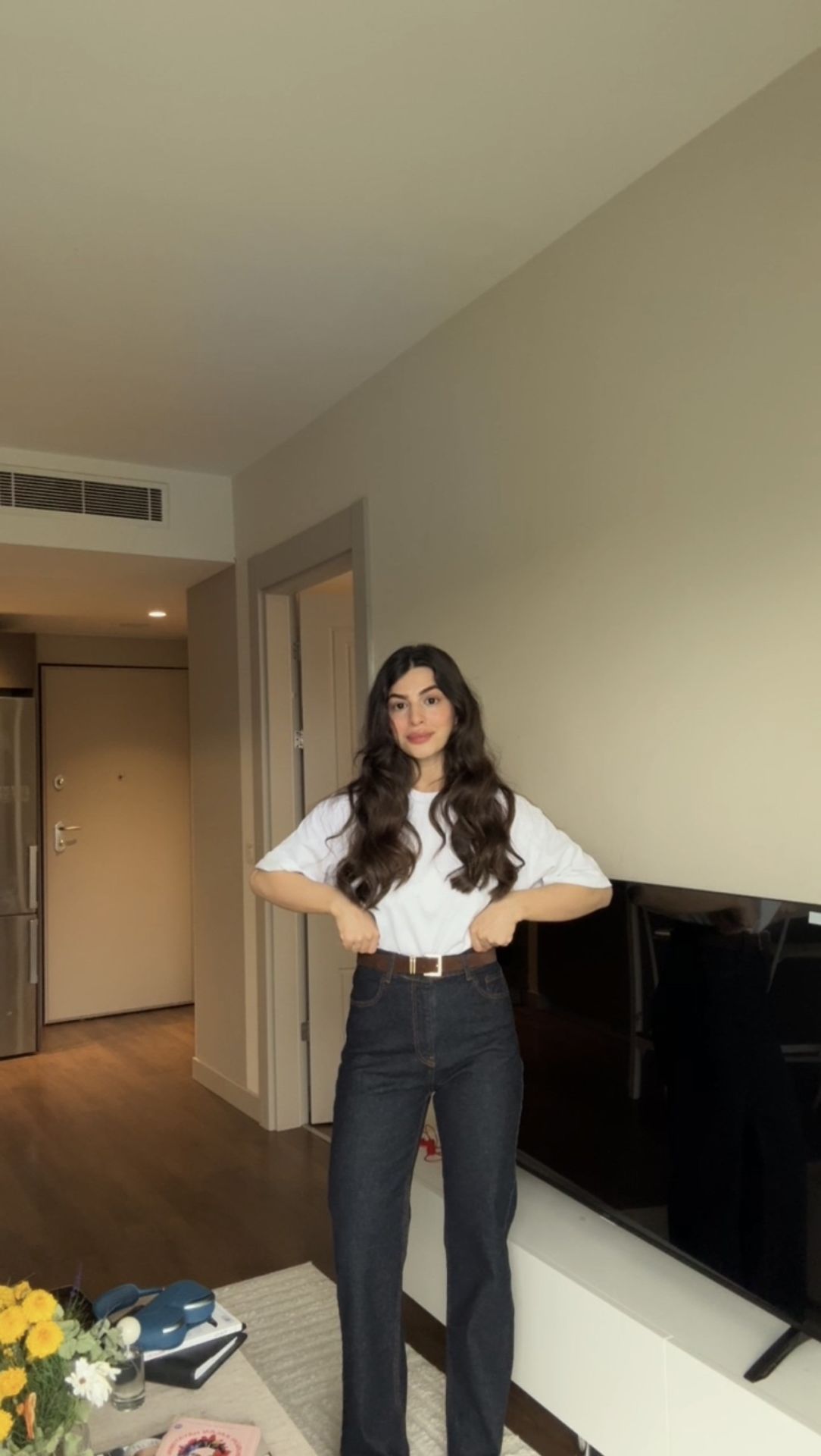 Kemerli kesik paça straight jean