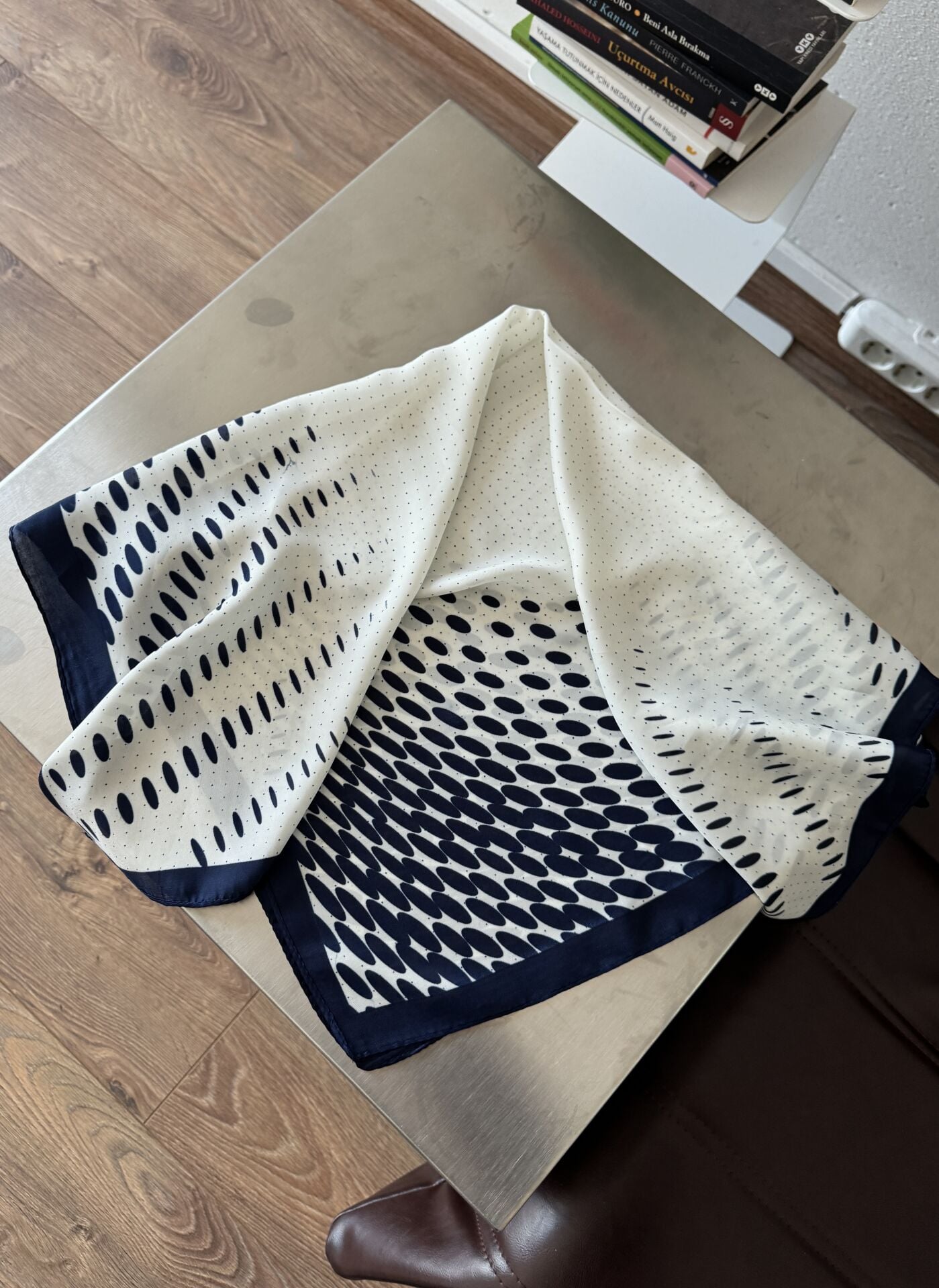 Larcivert noktalı ipek saten fular