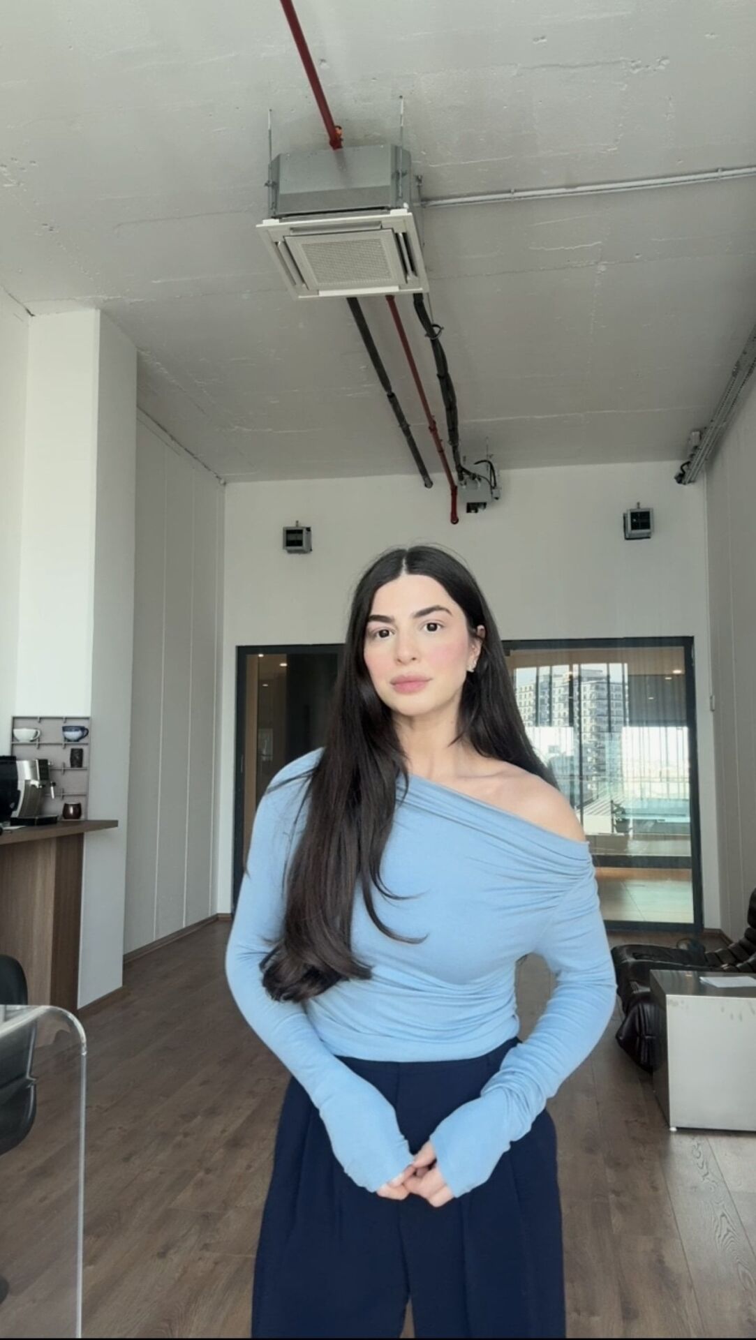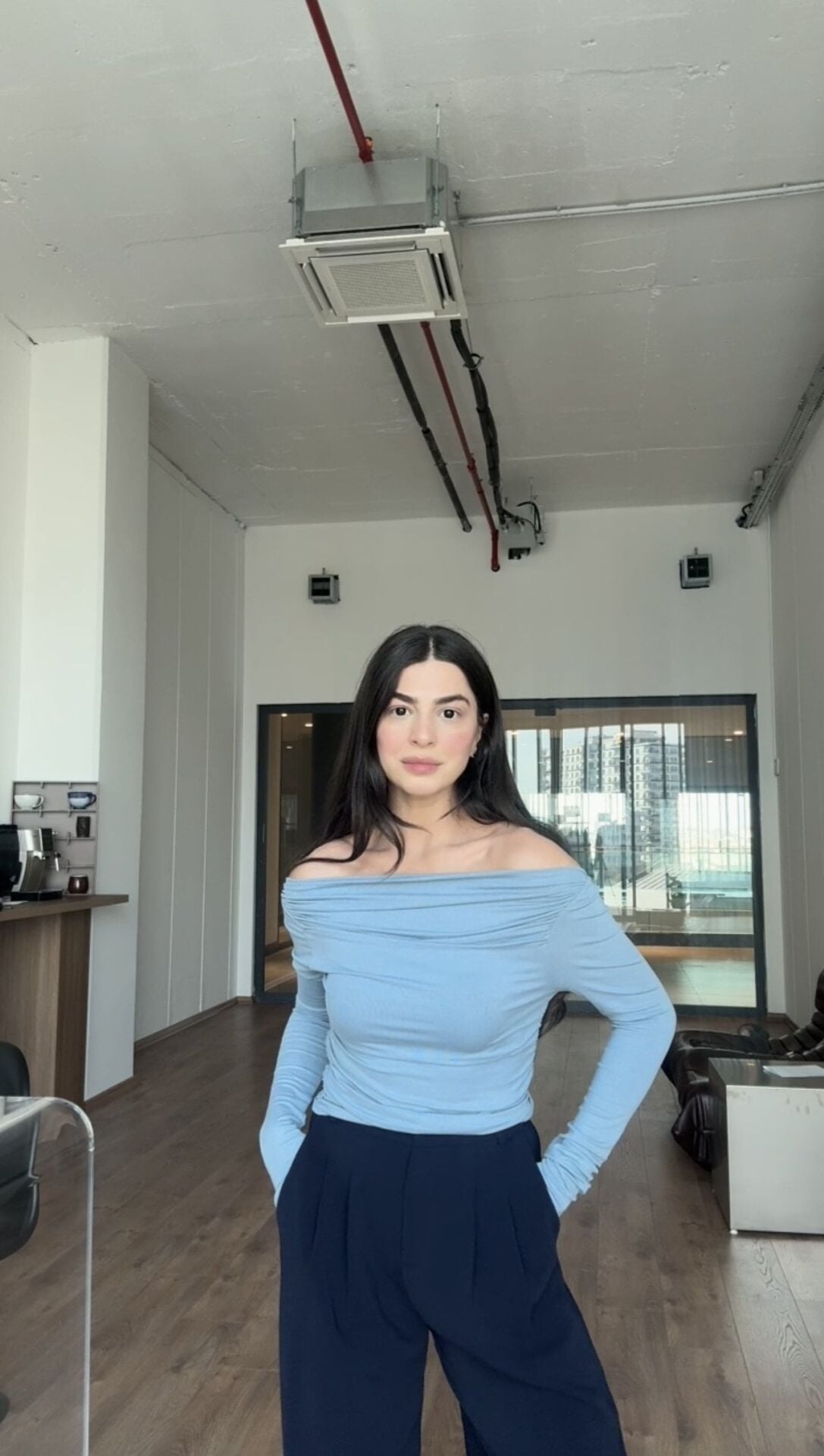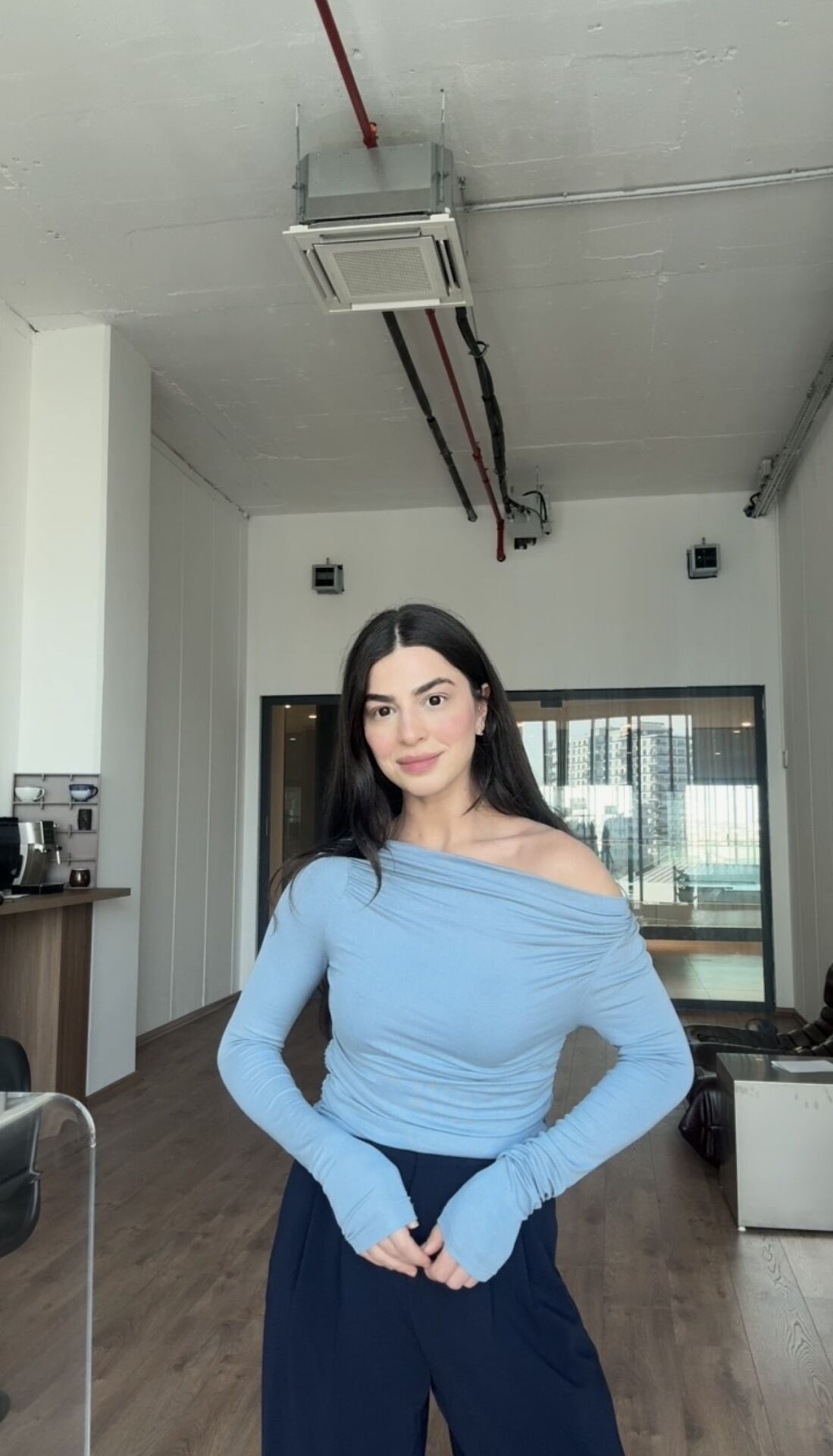 Madonna yaka drapeli mavi şık bluz
