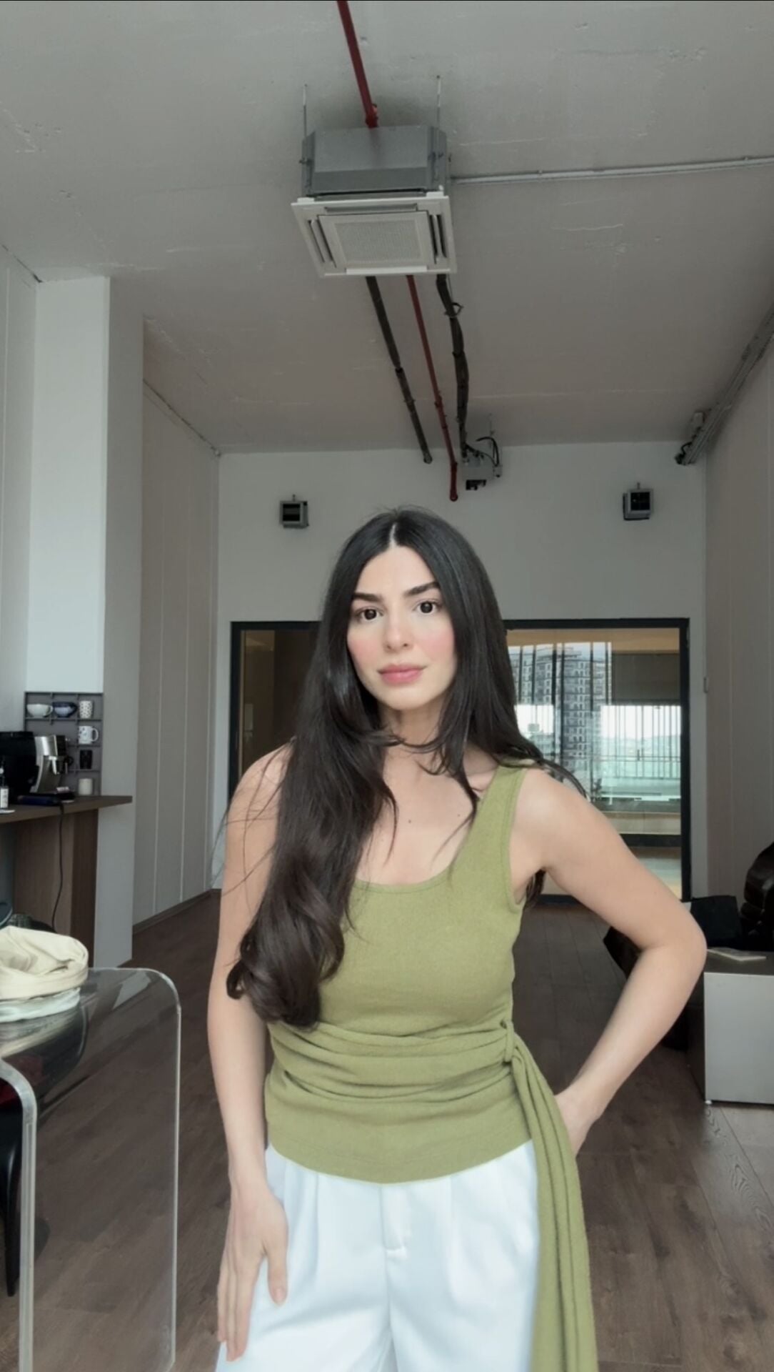 Massımo dutti yap yeşili kuşak detaylı bluz