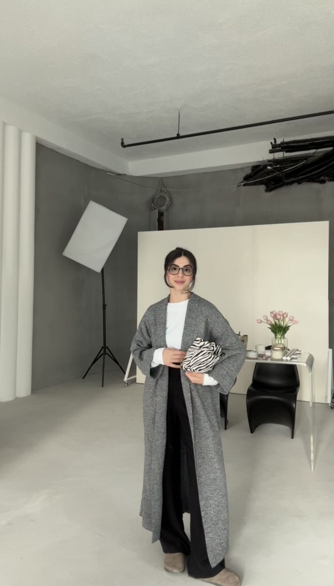 Maxi boy karışımlı gri tonlu trend hırka