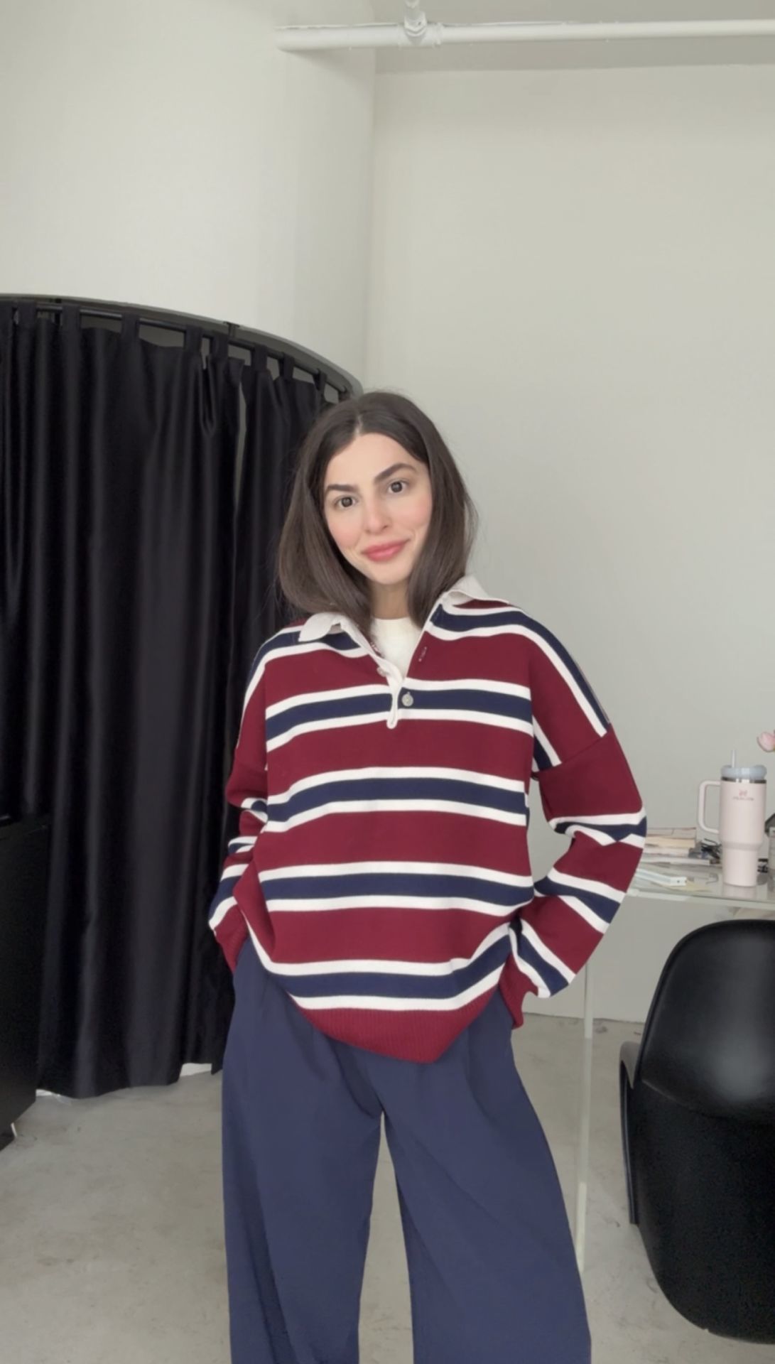 Polo yaka çizgili triko kazak