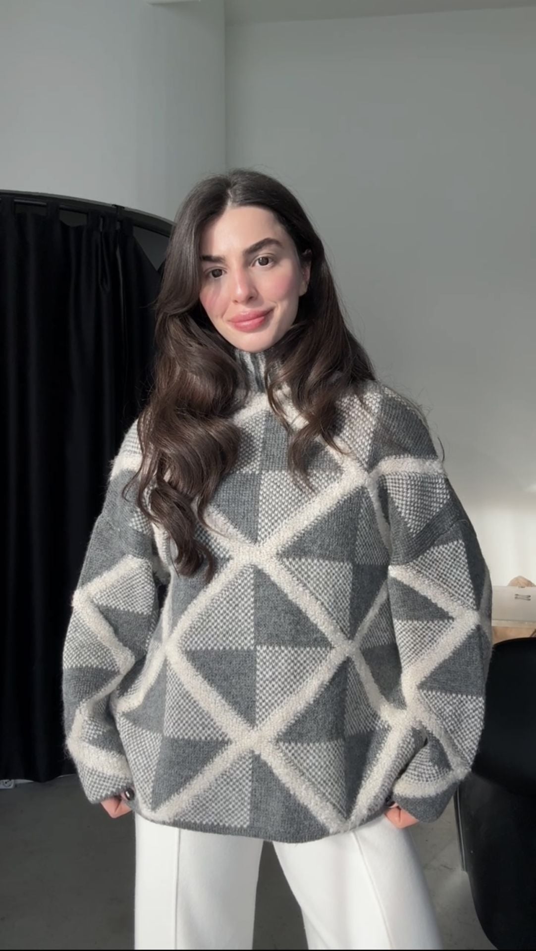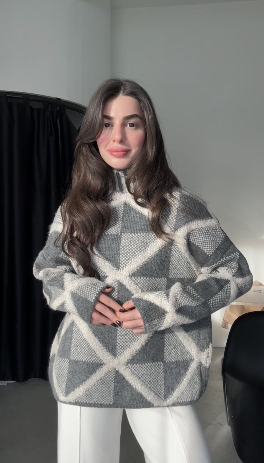 Premium kalite gri boğazlı örgü kazak