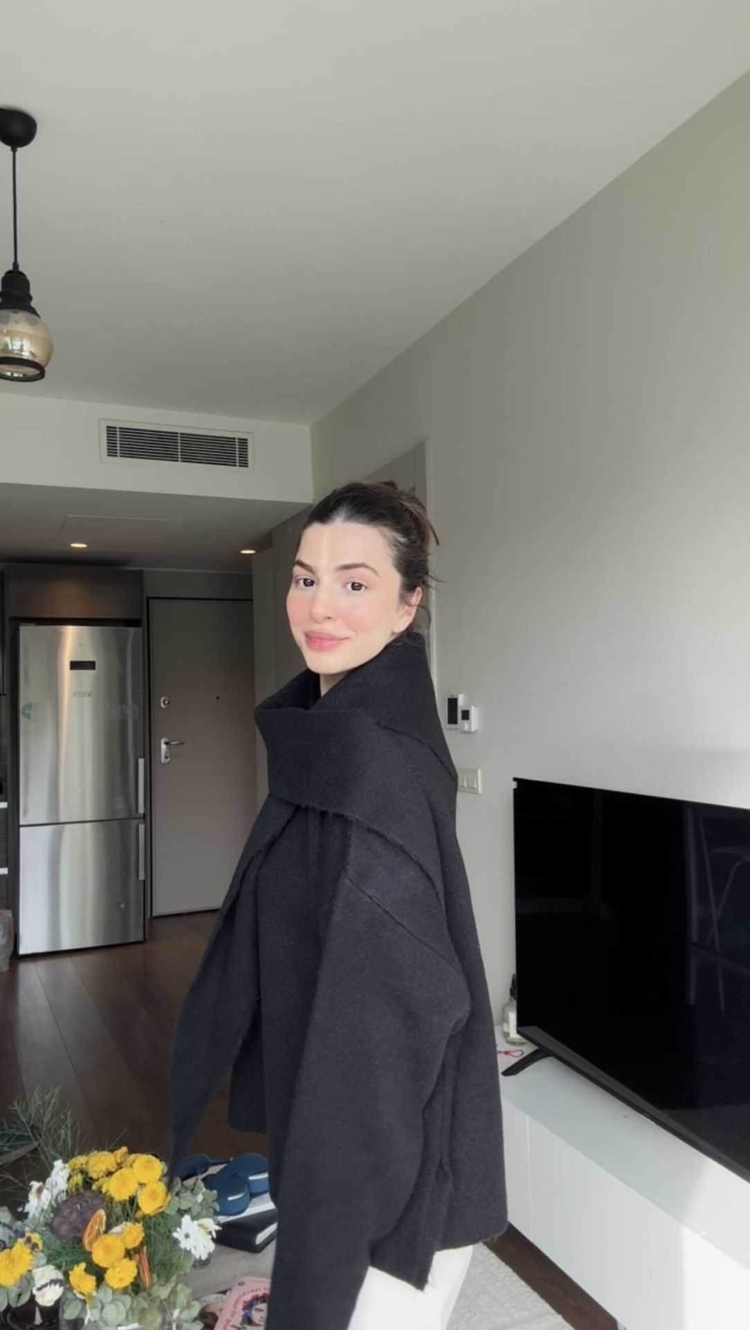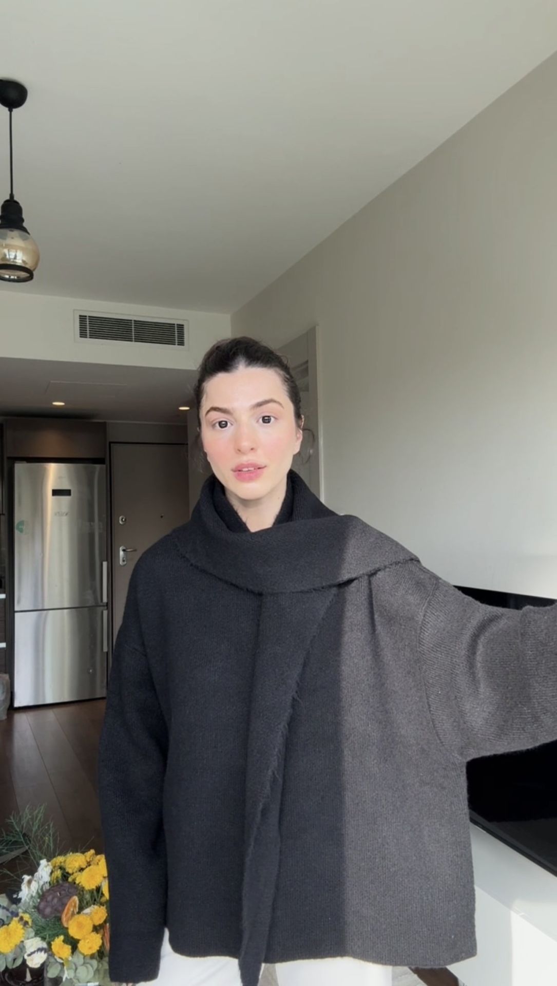 Şallı siyah tok dokulu triko kazak