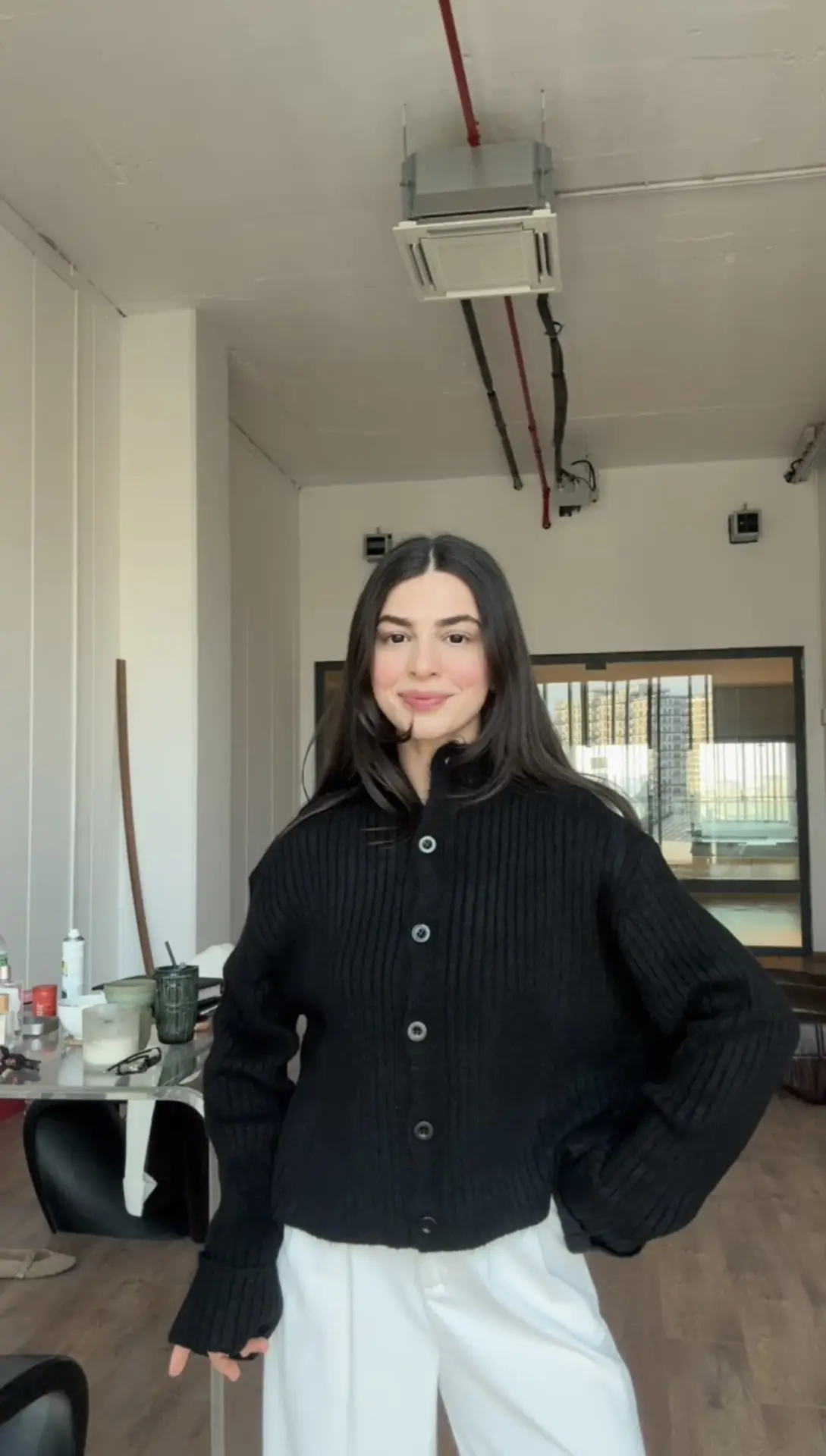 Siyah düğmeli hırka kazak