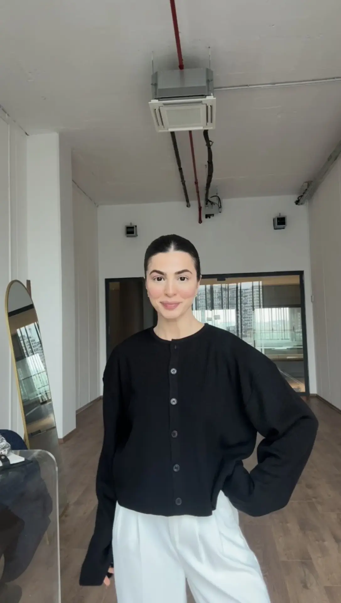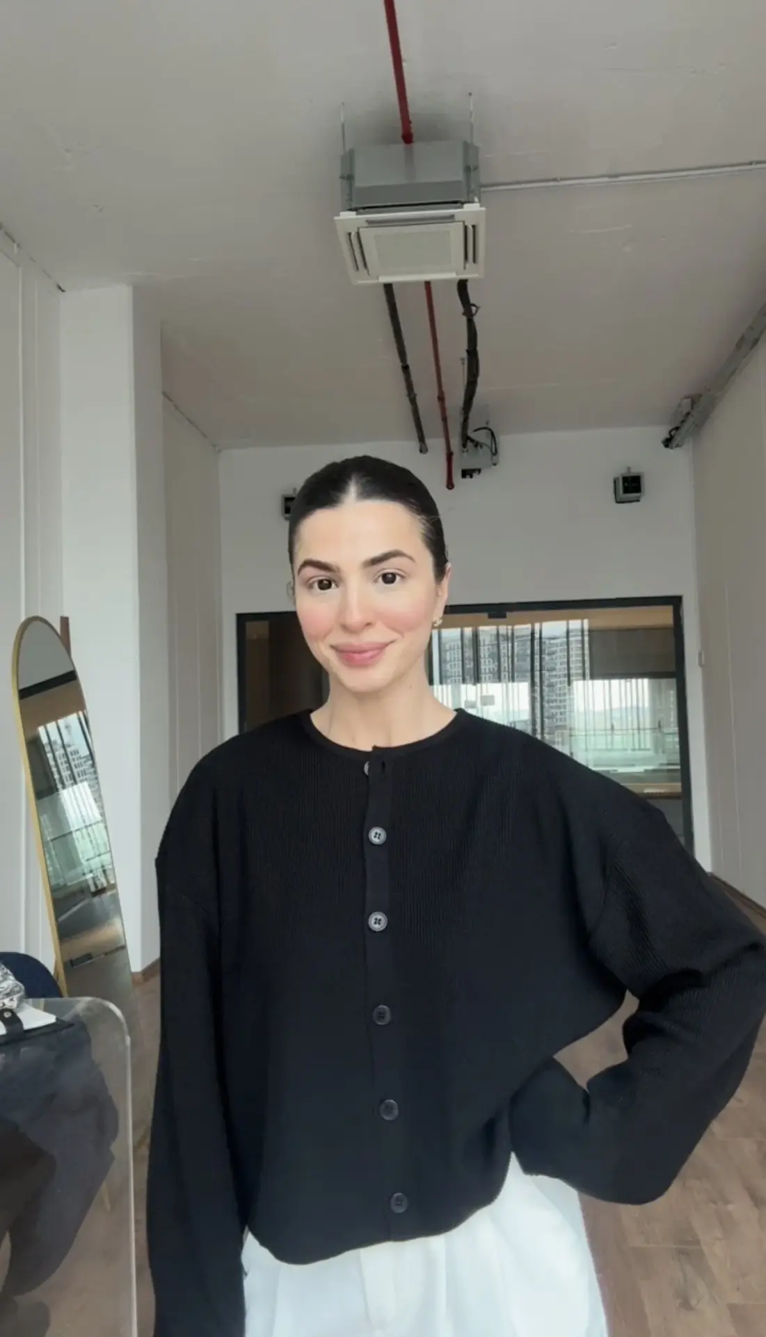 Siyah düğmeli triko hırka kazak