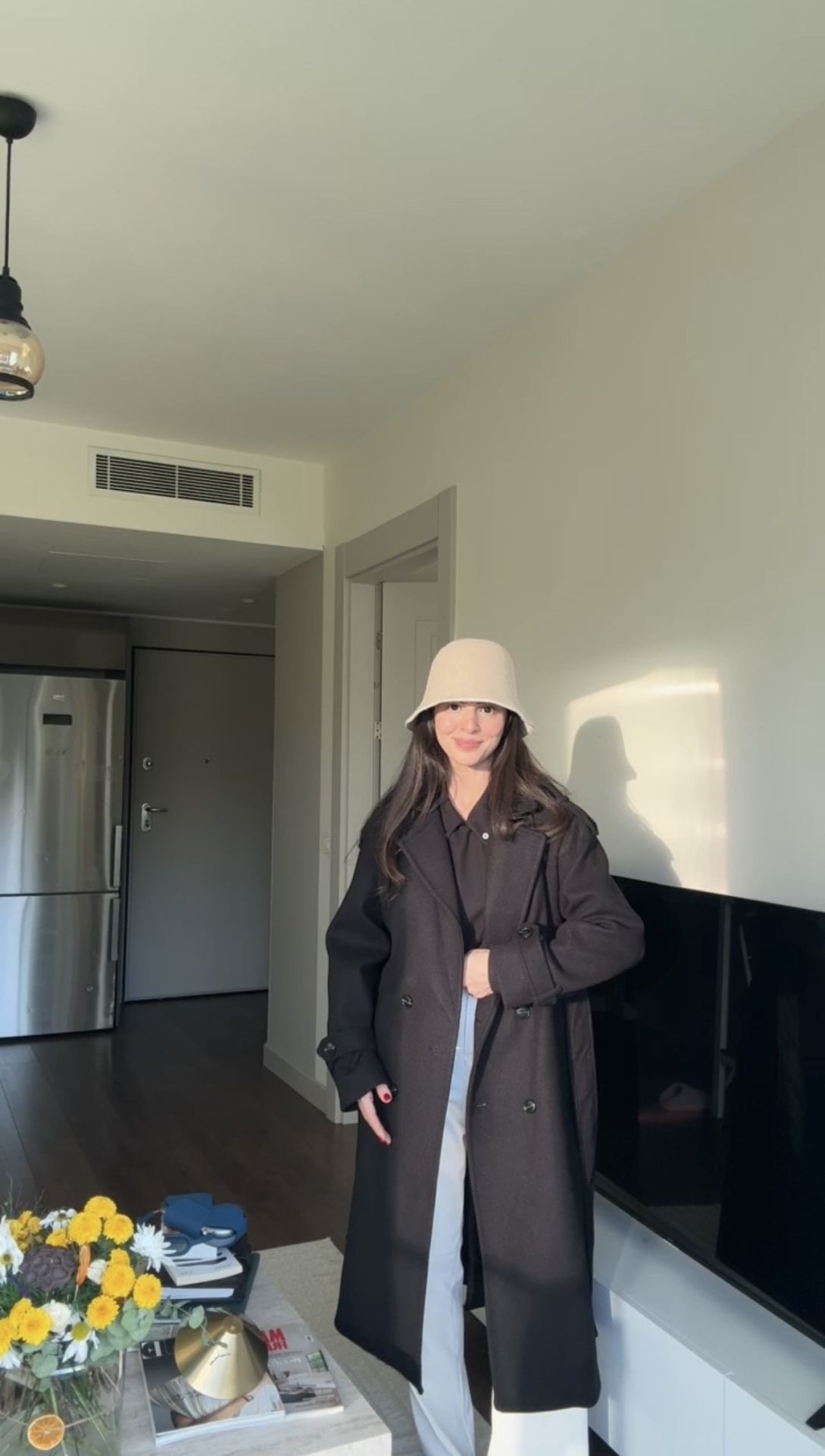 Siyah kaşe kuşaklı kaban