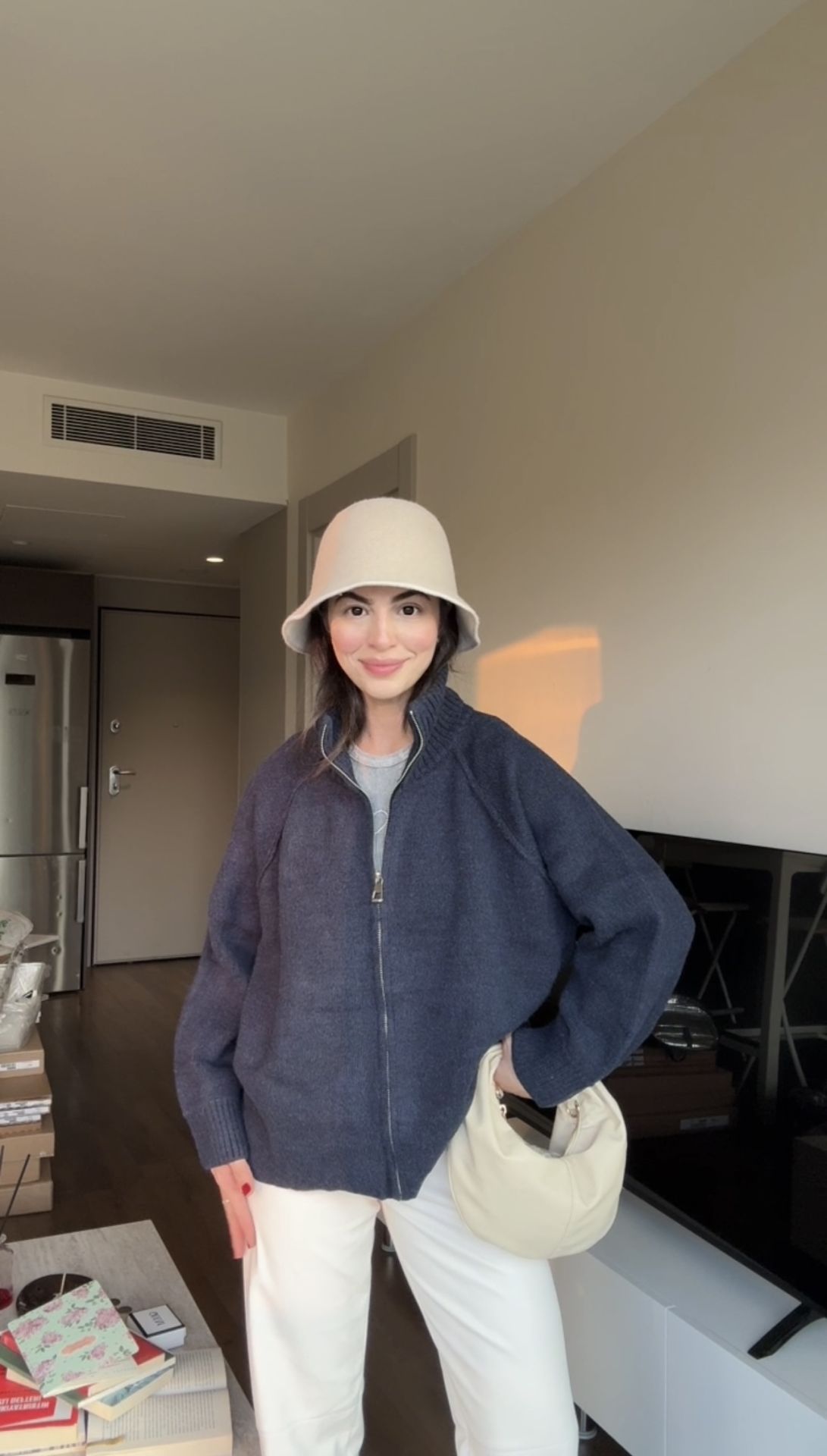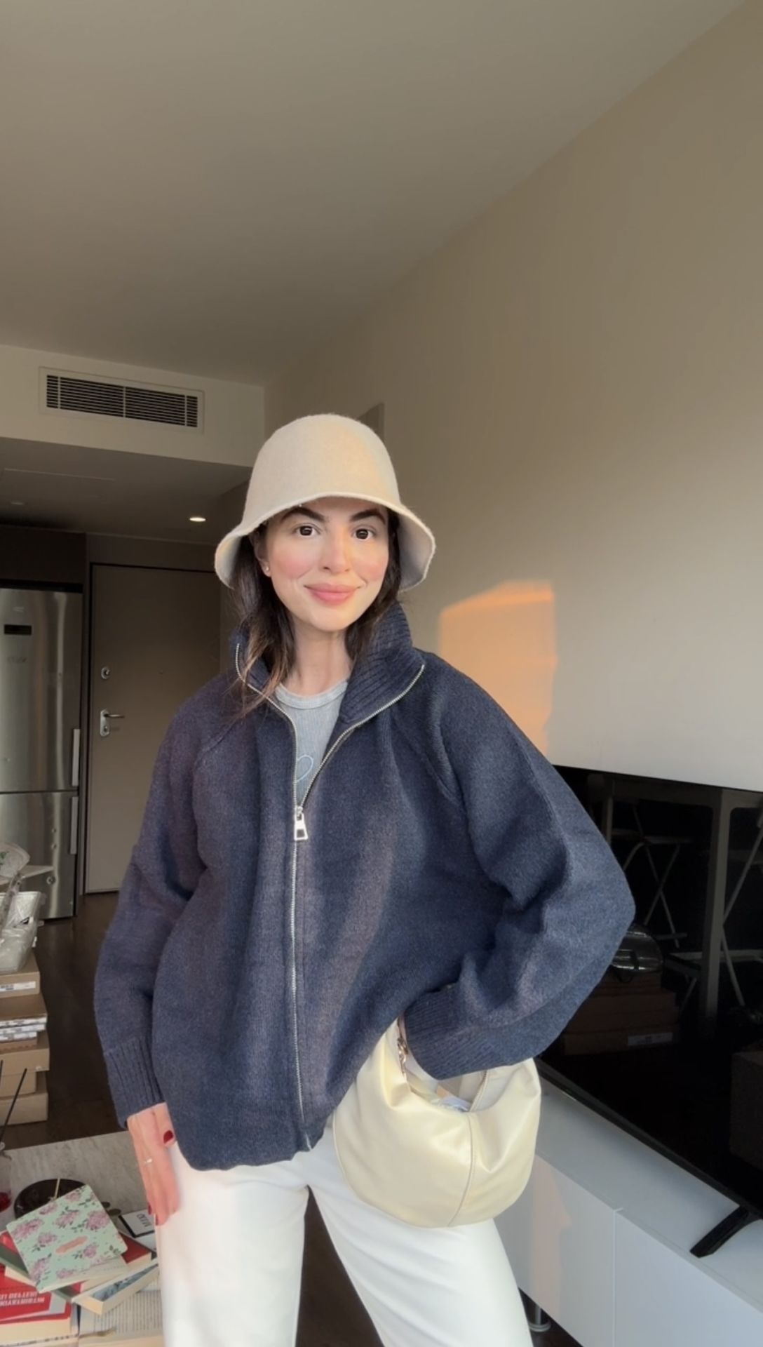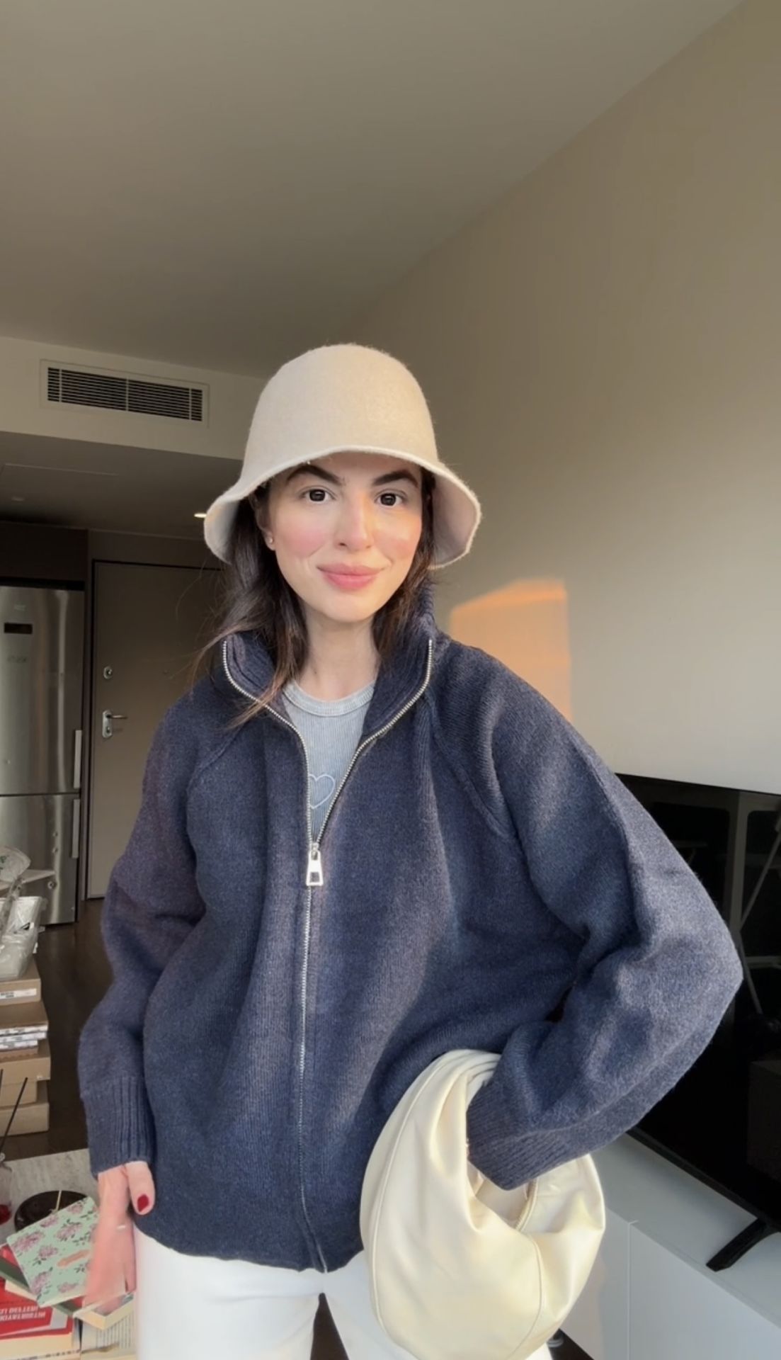 Tatlı larcivert fermuarlı kazak hırka