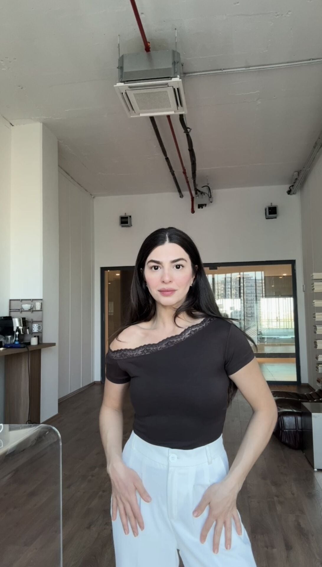 Tek omuz detaylı dantelli kahve bluz