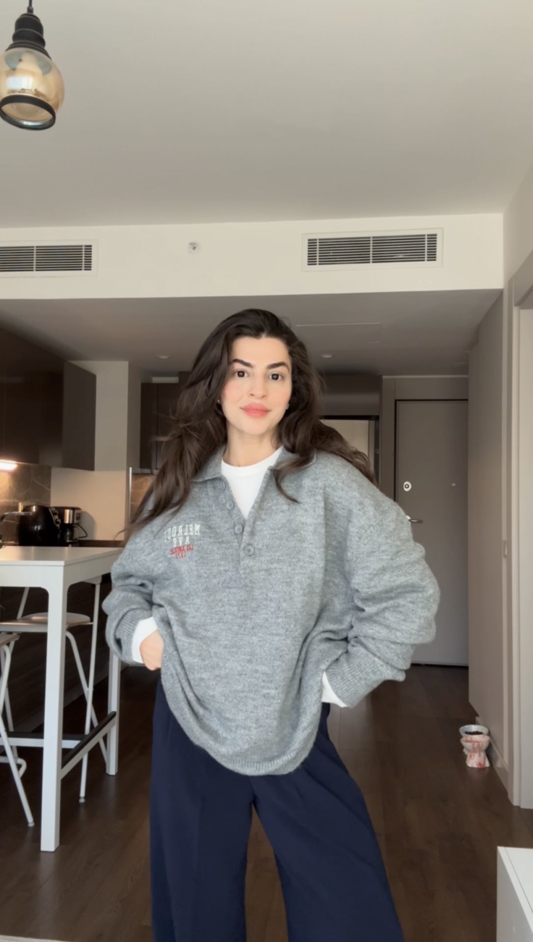 Yaka düğmeli orjinal marka gri triko